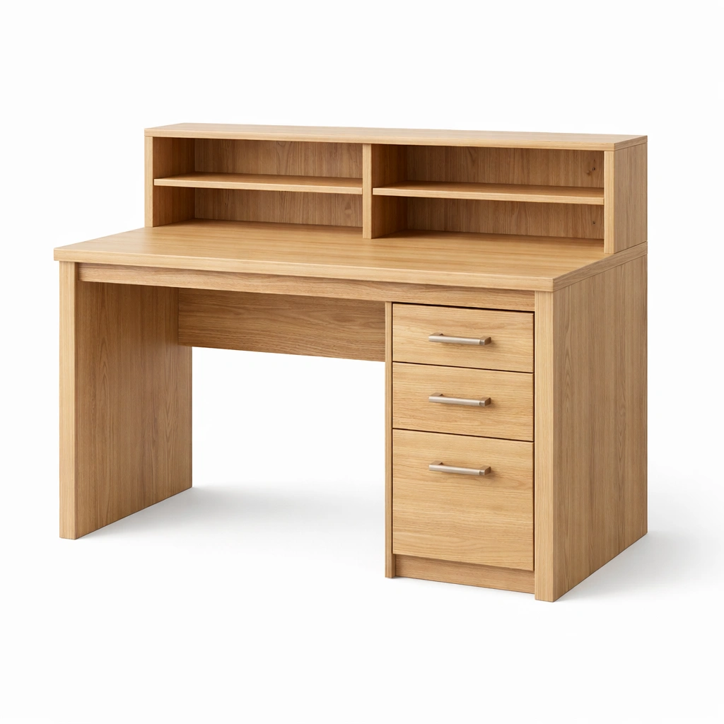 Scrivania in legno con cassetti e ripiani rovere naturale