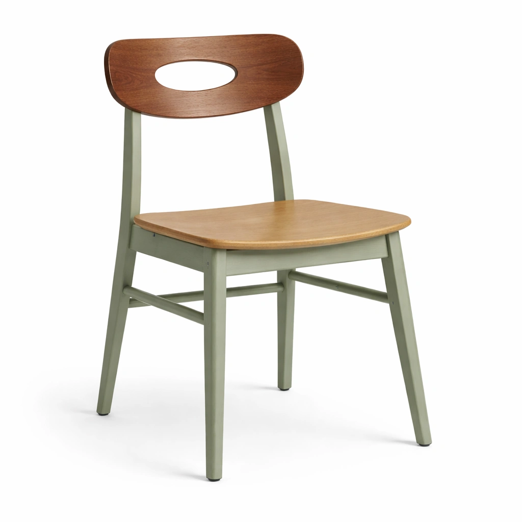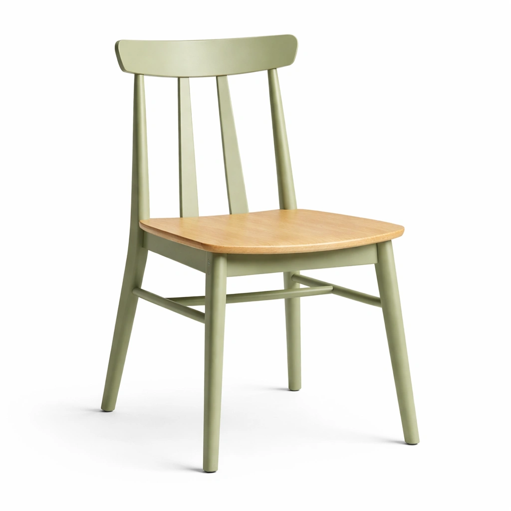 Sedia da pranzo in legno con struttura verde e seduta naturale