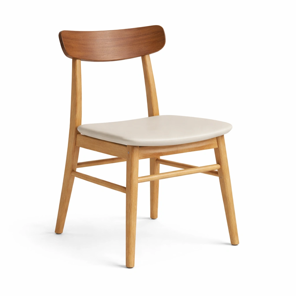 Sedia da pranzo in legno di noce con seduta in ecopelle beige