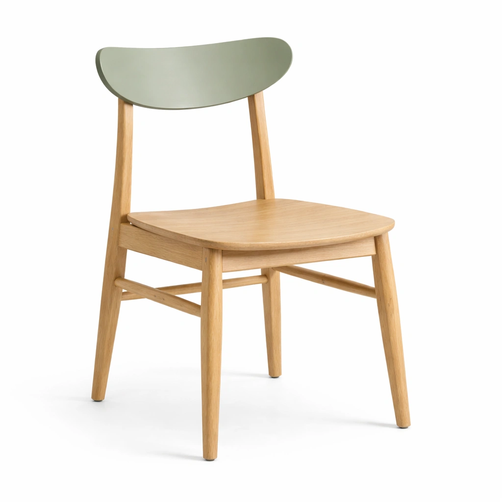 Sedia da pranzo in legno di rovere con schienale in metallo verniciato verde