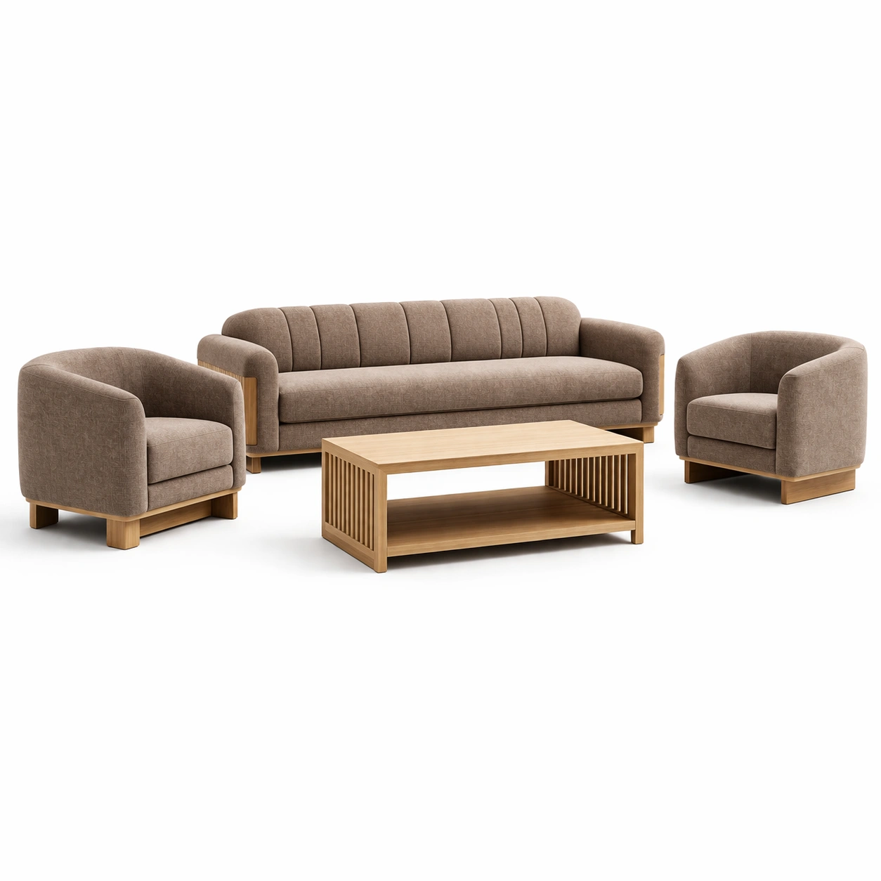 Elenco prodotti: 1 divano, 2 poltrone, 1 tavolino.